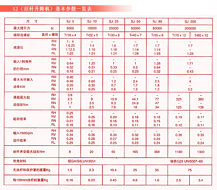 SJ型為基本型升降機(jī),即輸入方式為輸入軸型